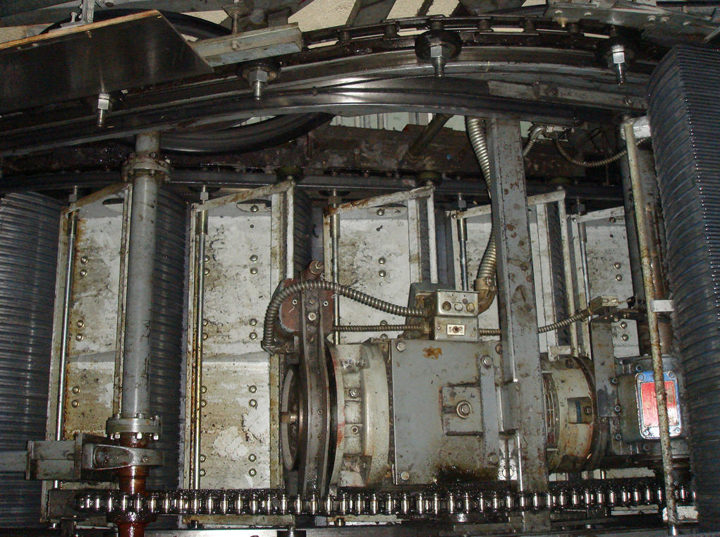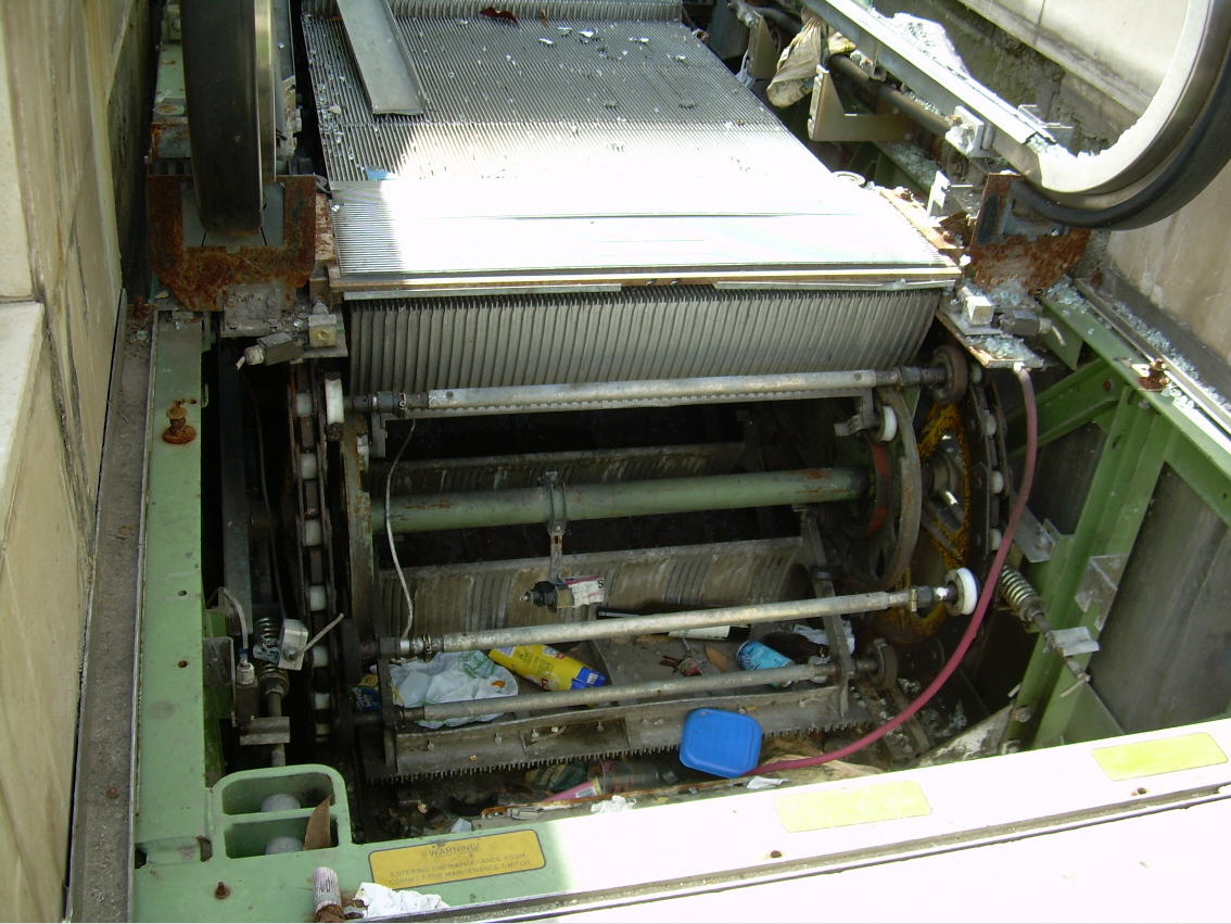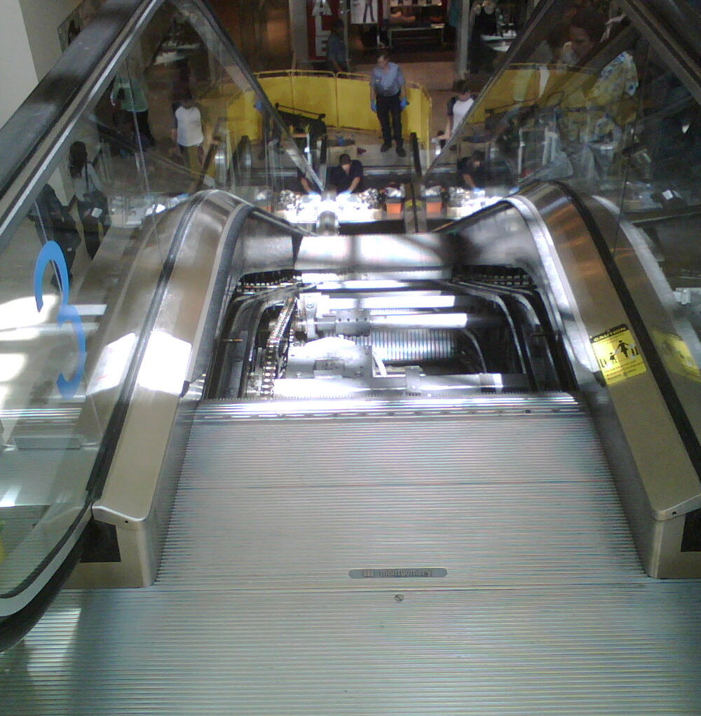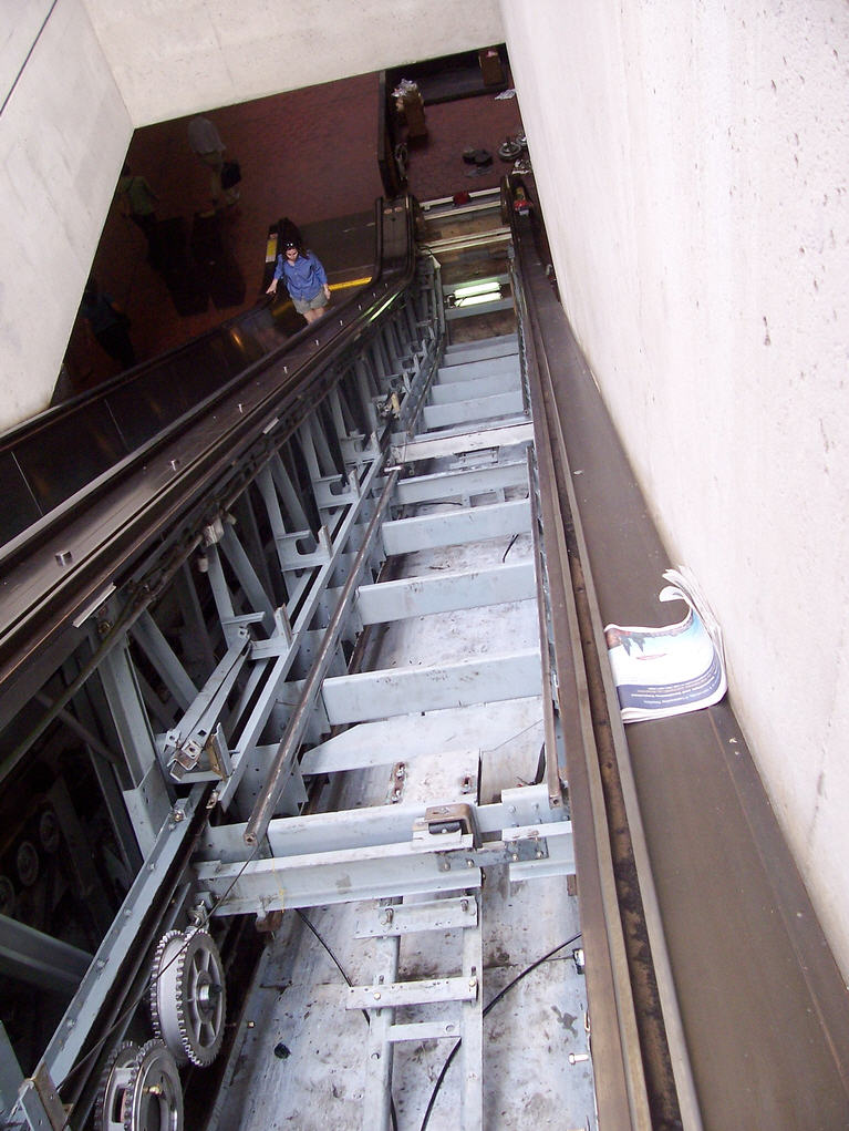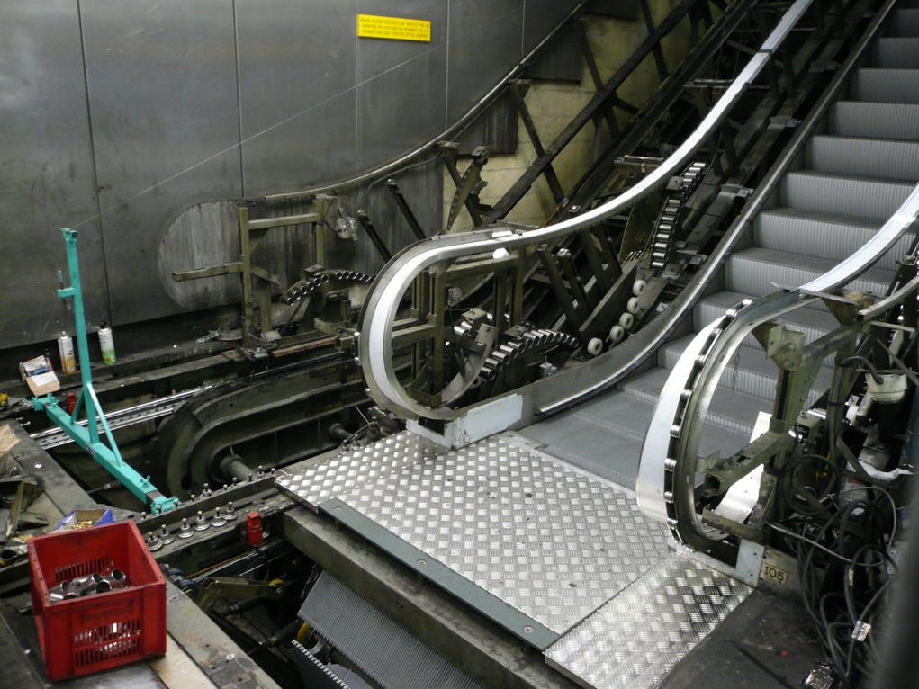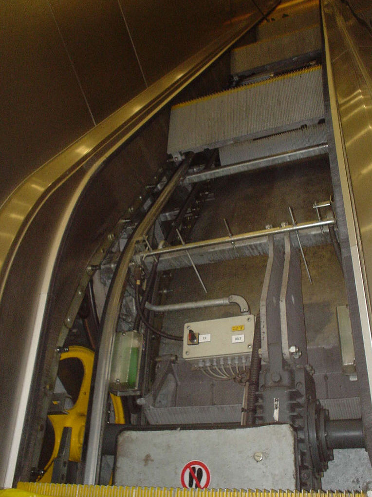 KONE E-5000 Escalator. They have removed the drive sheave, which