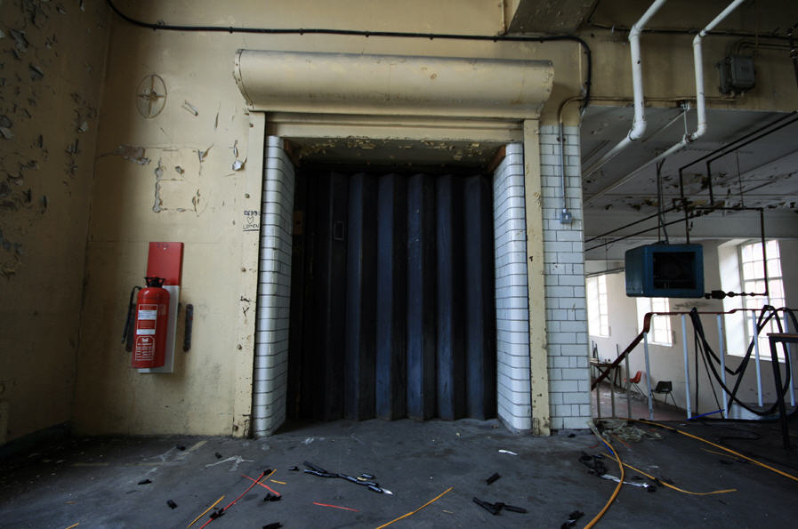 An accordion gate/door at the derelict Broadford Works...